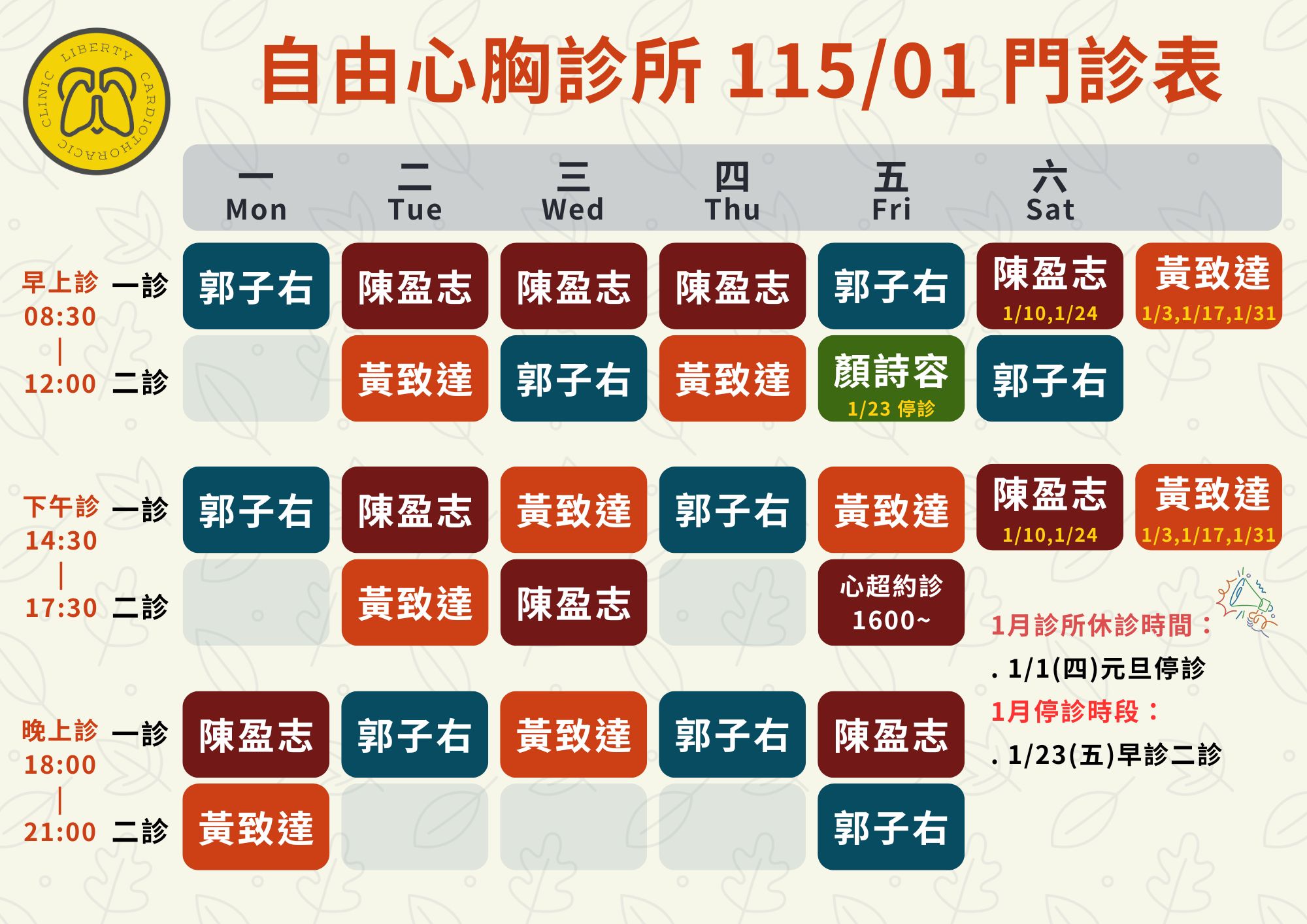 * 1/23(五) 上午顏醫師休診,同時段由一診醫師負責看診